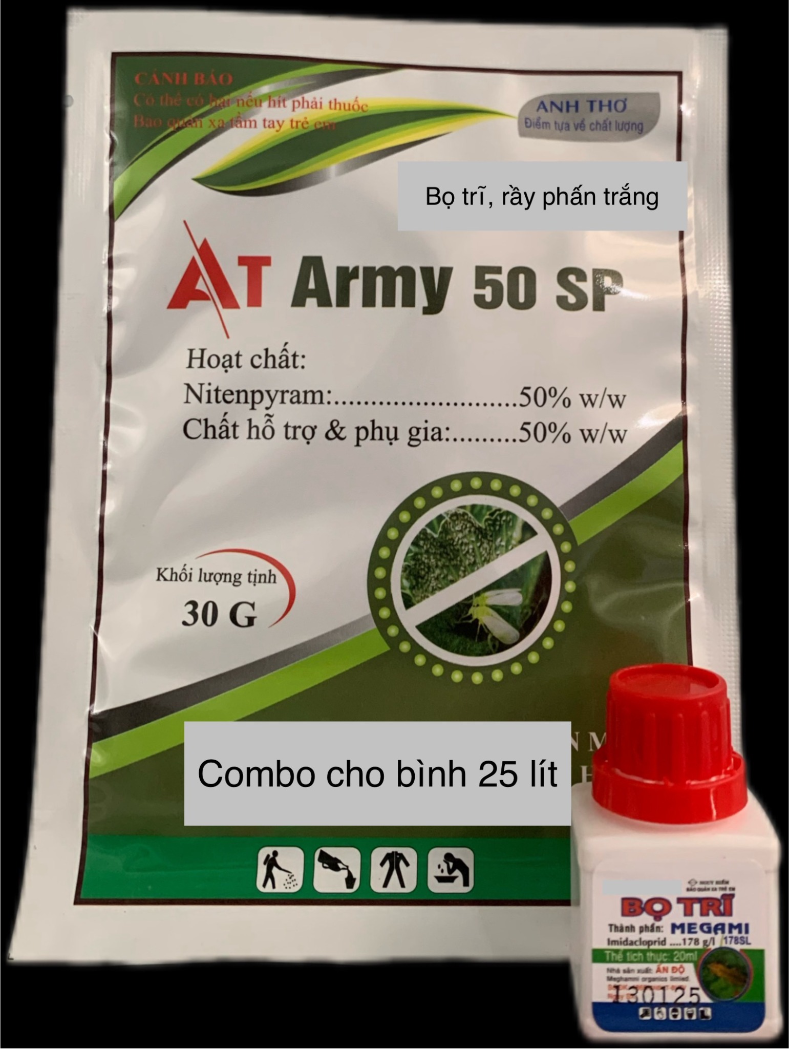 1 gói AT ARMY (30gam) + 1 chai Bọ Trĩ (20ml) = phun 1 bình 20-25L