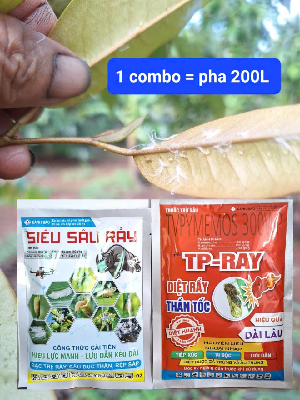 Combo 3: (1 gói) Siêu sâu rầy 100gam + (1 gói) TP-Ray 100gam = phun 1 phuy 200L nước