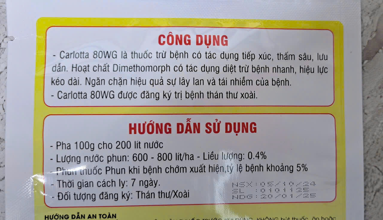 👍 Pha 100g cho 200 lít nước phun phòng ngừa khi trái lớn. Pha 200-300g cho 200 lt phun khi có biểu hiện bệnh.