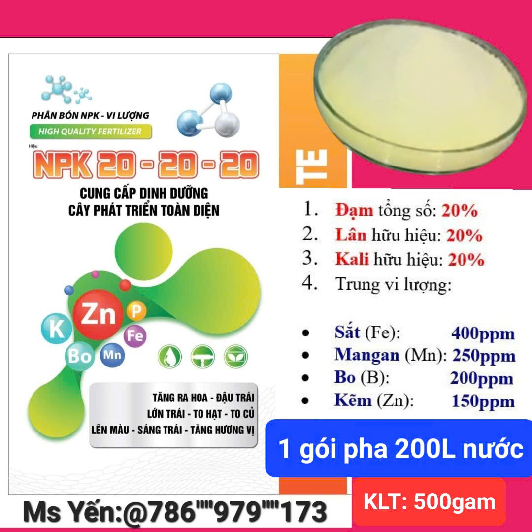 PHÂN BÓN LÁ NPK 20-20-20 - gói 500gam