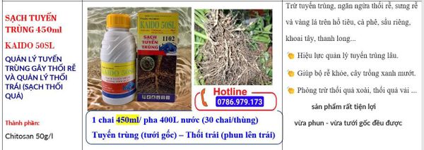 - Trừ tuyến trùng, ngăn ngừa thối rễ, sưng rễ và vàng lá trên cây hồ tiêu, cà phê, sầu riêng, khoai tây, thanh long...