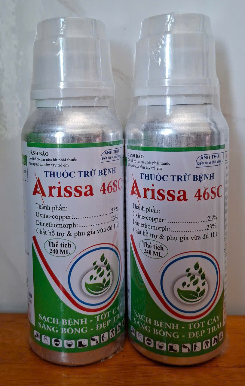 - Chai ARISSA 46SC (chai 240ml): pha 8 bình máy (hoặc phun 1 phuy 200L nước)