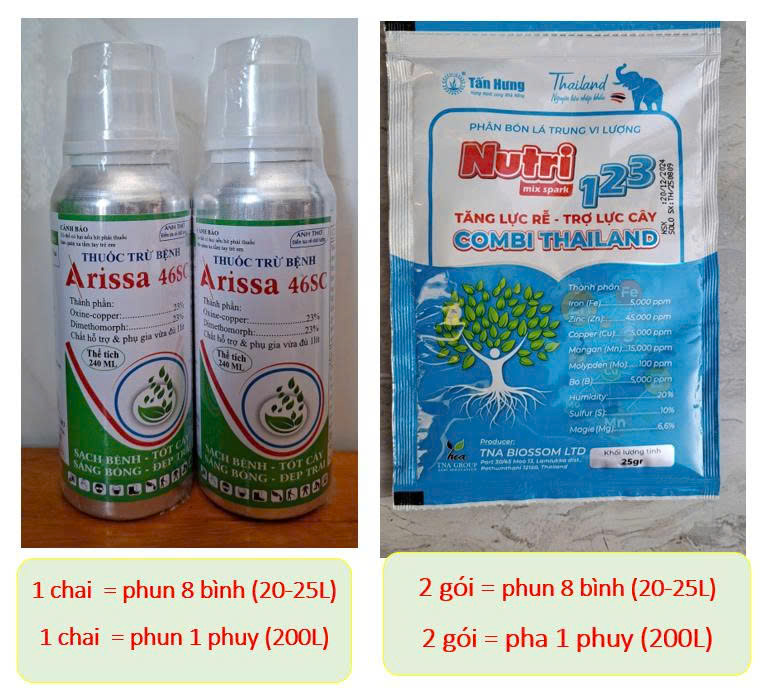 - Phun phuy: 2 gói COMBI THÁI (NUTRI 123)/ pha 200L nước.