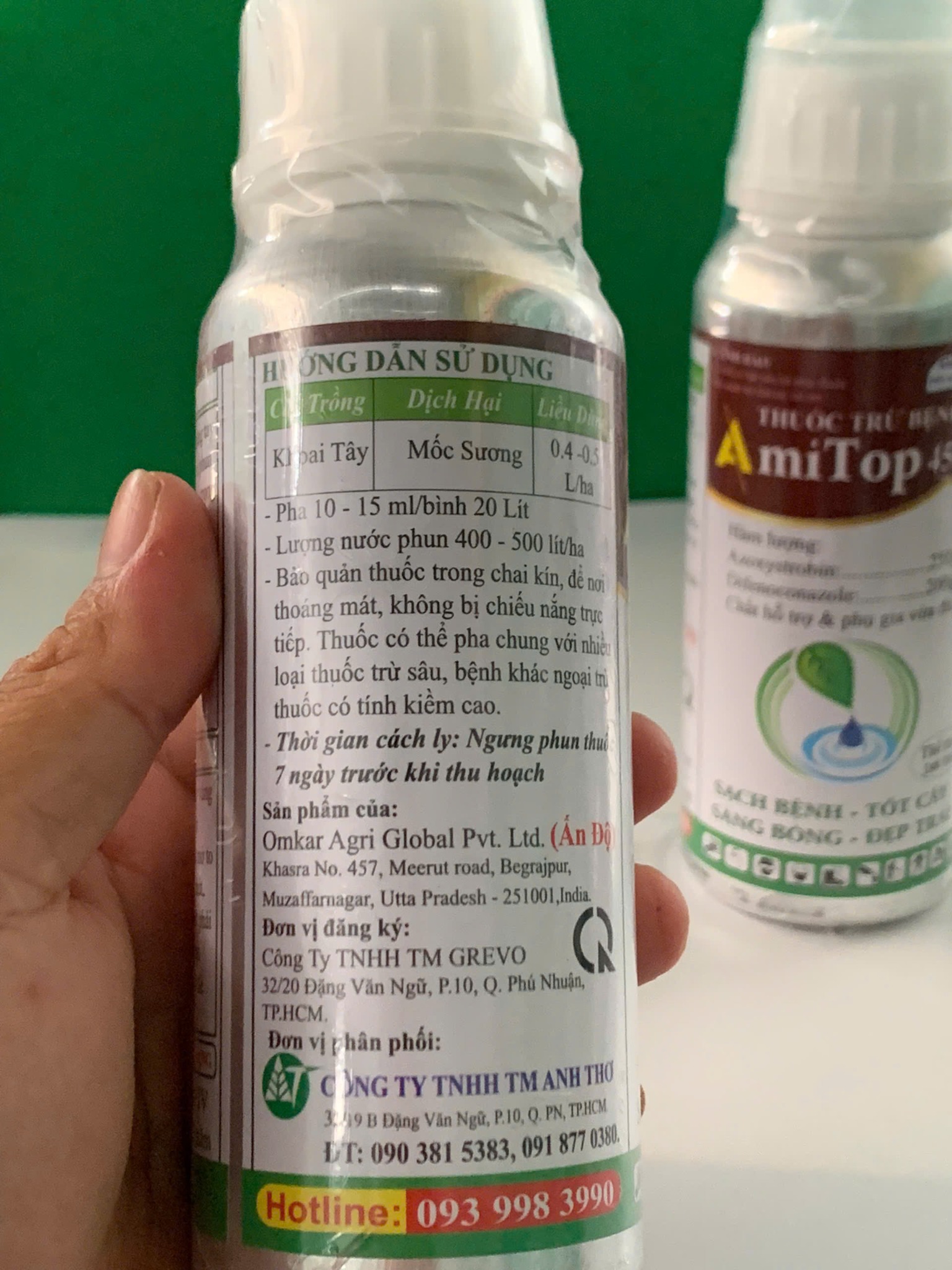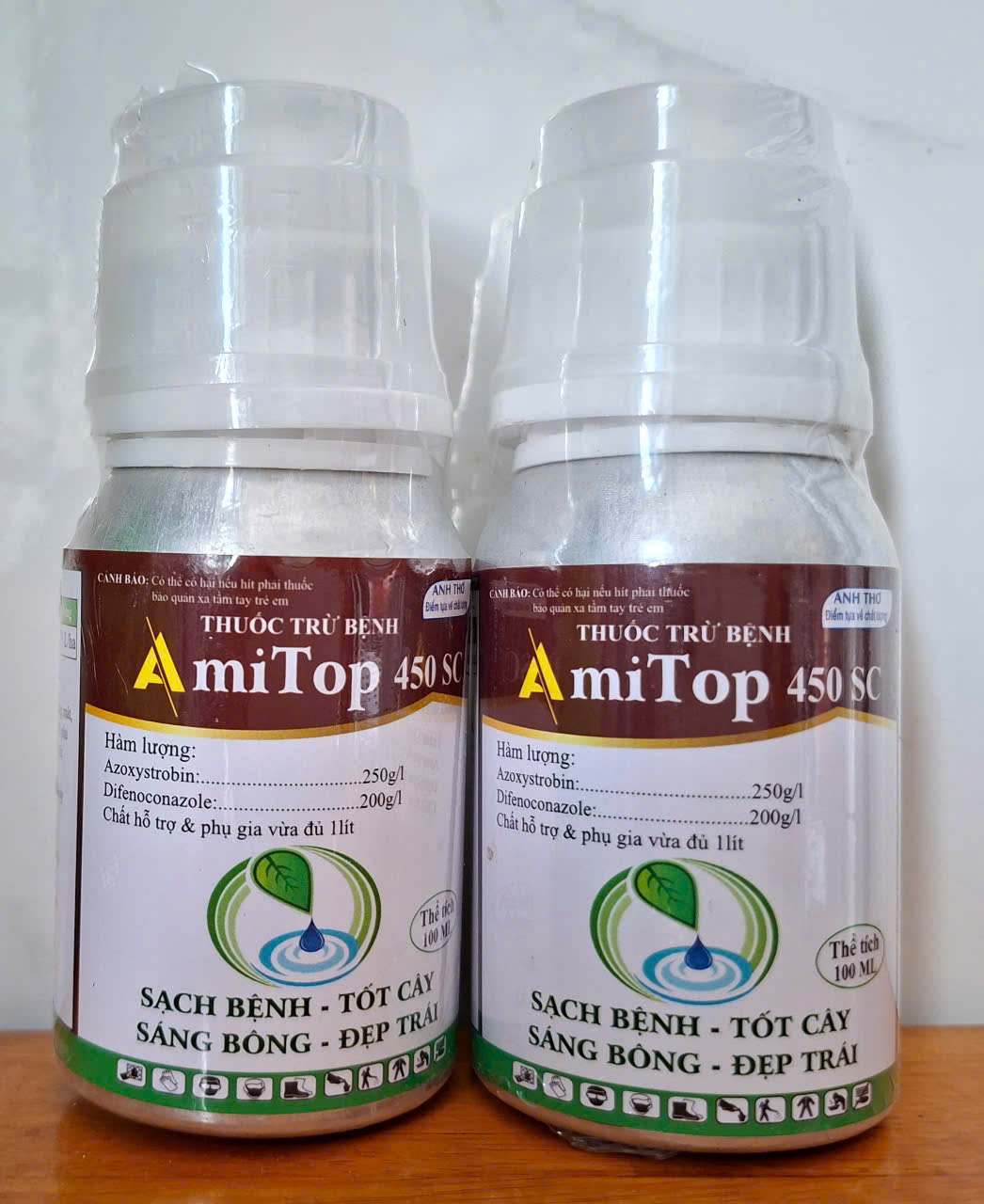 Chai AMITOP 450SC (chai 240ml): pha 8 bình máy (hoặc phun 1 phuy 200L nước)