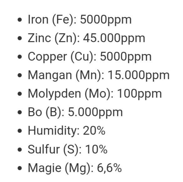 - Mangan (Mn): 15.000ppm