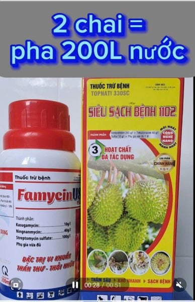 Giải pháp 3: 1 chai FAMYCIN 200ml + 1 chai SIÊU SẠCH BỆNH 200ml = 200 lít