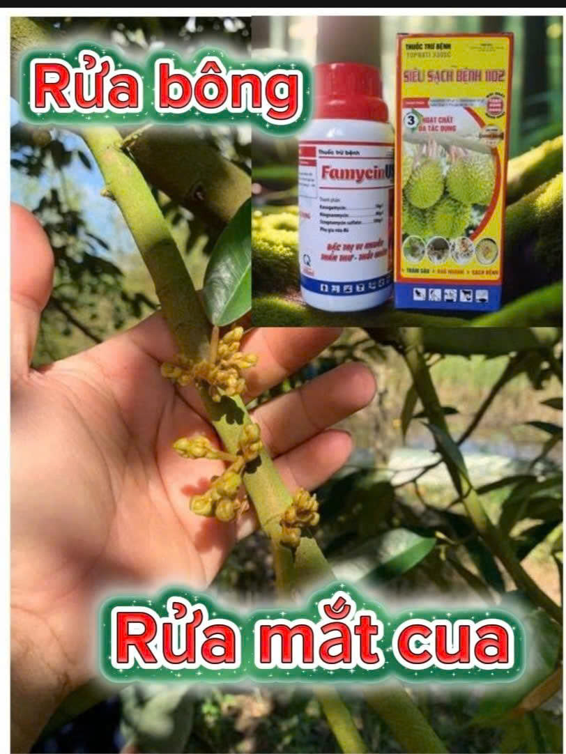 Khi mắc cua bị ra lọt sọt cộng thêm gặp thời tiết bất lợi (mưa), dẫn đến tình trạng mắc cua không thoát ra được hoặc mắc cua bị đen. Vậy RỬA MẮT CUA là để bảo vệ, kích thích và nuôi dưỡng mầm hoa (mắt cua) khỏi bị bệnh, bông không bị khô đen, giúp mắt cua phát triển khỏe mạnh, sáng rõ, tăng tỷ lệ đậu trái trong điều kiện tiết bất lợi (mưa nhiều).