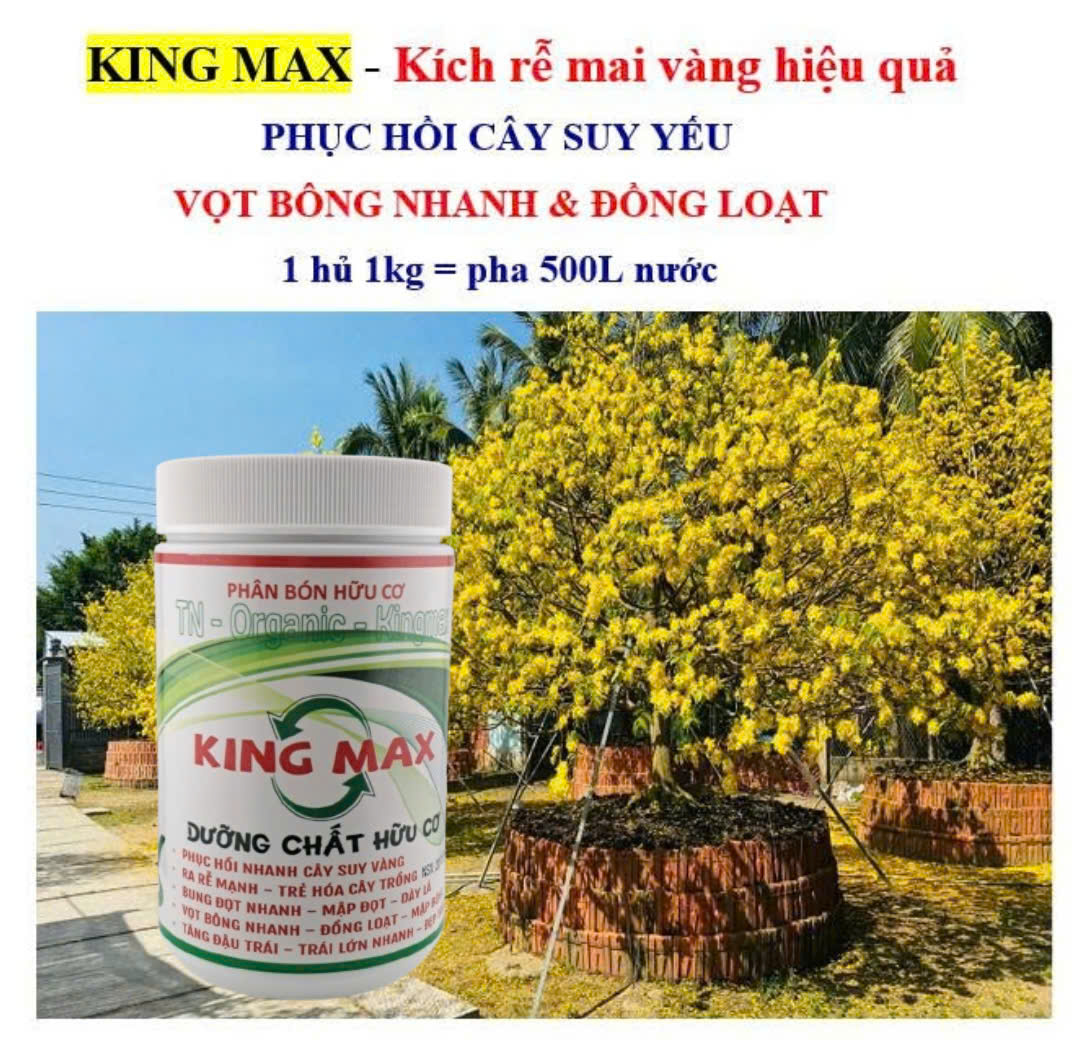 Ngoài công dụng kích rễ, KING MAX còn giúp cây mai vọt bông nhanh và ra hoa đồng loạt.