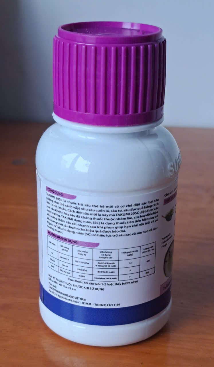 📌 Takumi 20SC dạng nước (SC) có hiệu lực trừ sâu cao cả sâu non và sâu trưởng thành.